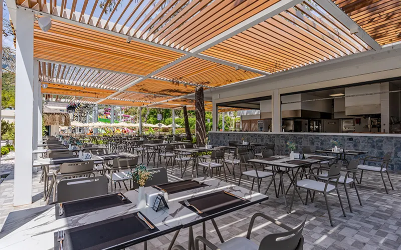 Bergiz Hotels & Resort Kemer's main restaurant offers our guests a dining experience in a pleasant environment, offering delicious flavors from world cuisine.