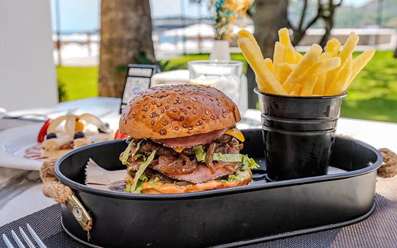 It is at your service throughout the day to crown your beach and pool enjoyment with delicious flavors. Add energy to your day with refreshing alcoholic and non-alcoholic beverages, along with carefully prepared sandwiches, toasts, burgers, and light snacks. Take a refreshing break with the help of our friendly staff and enjoy your holiday to the fullest.